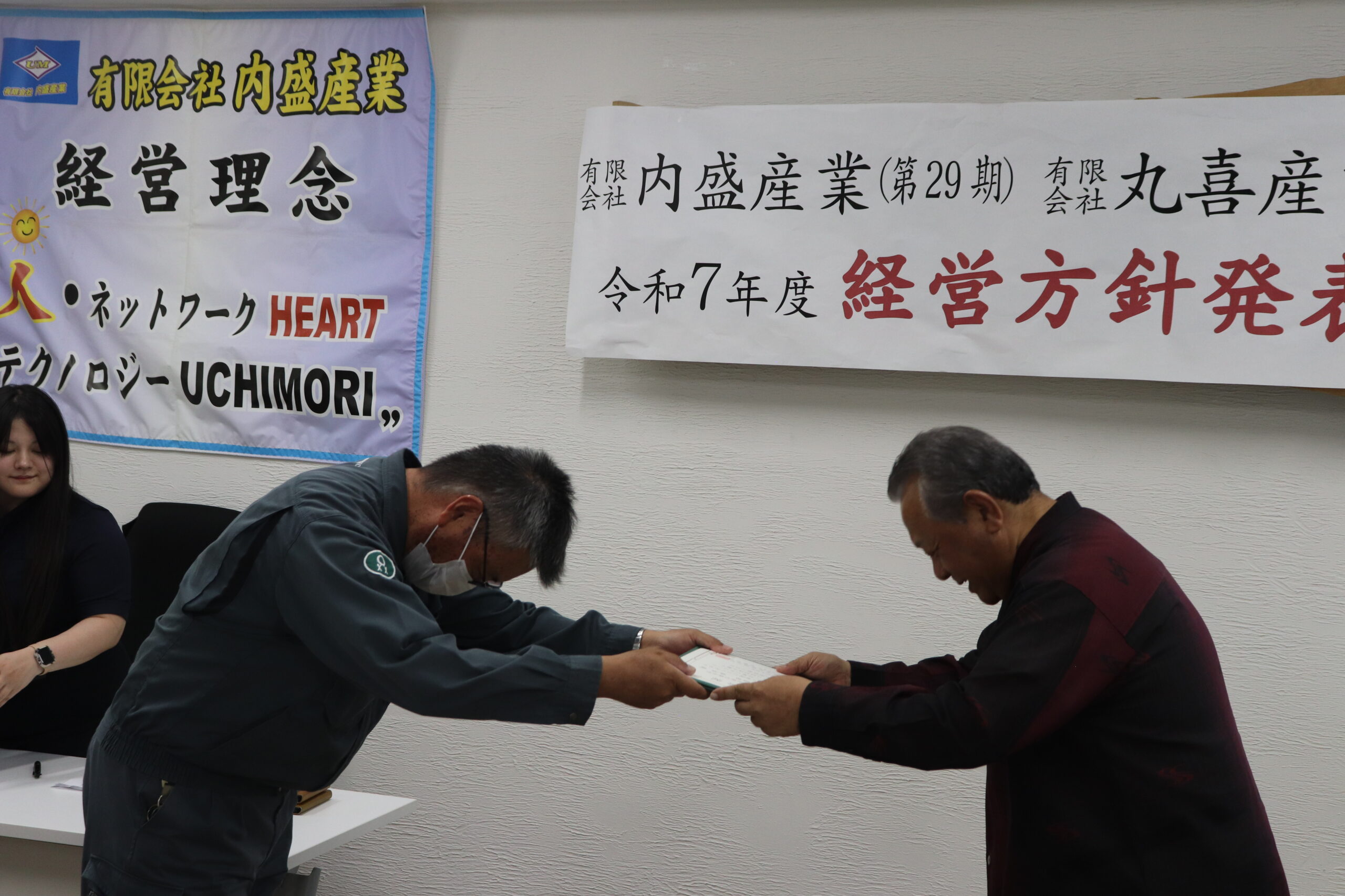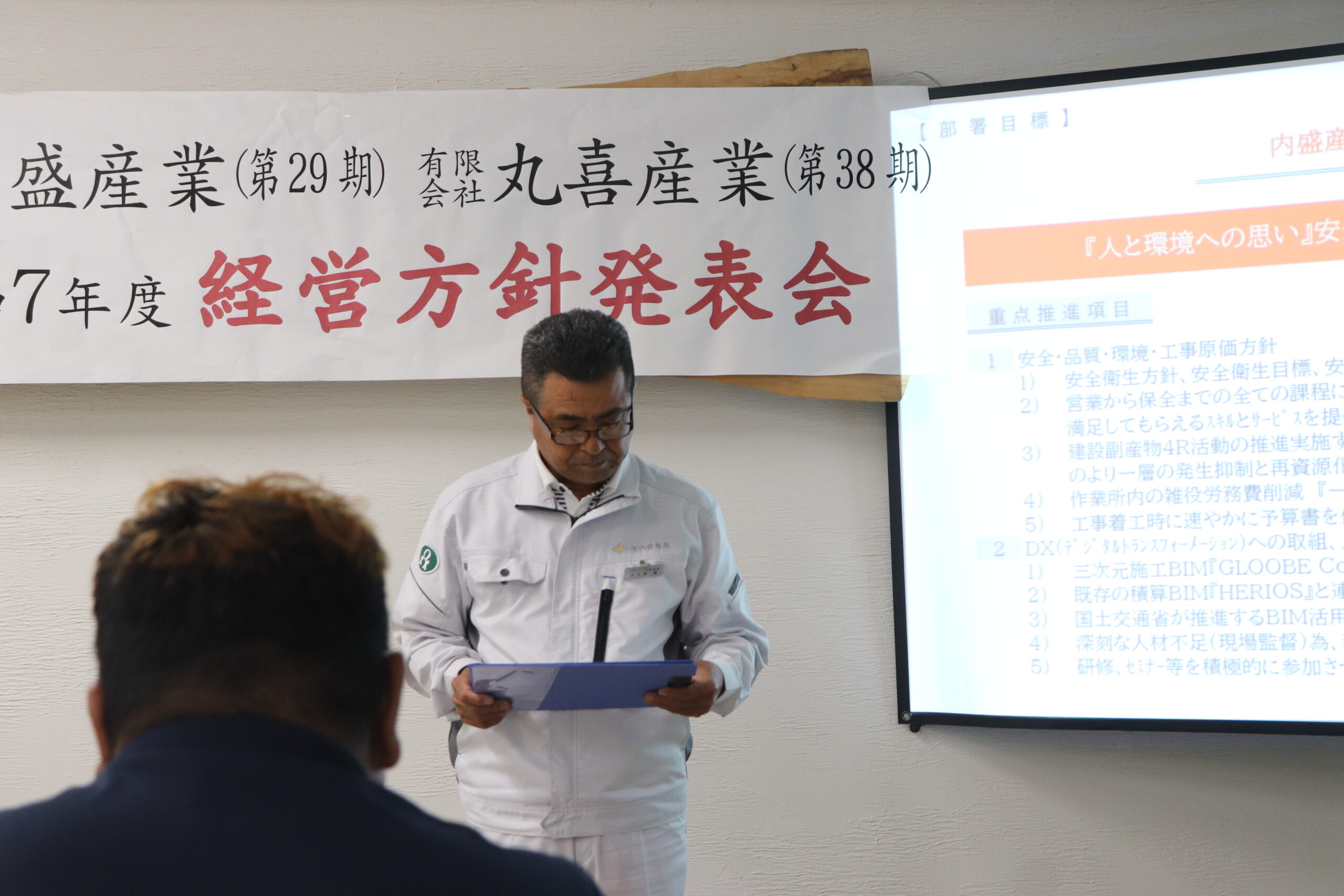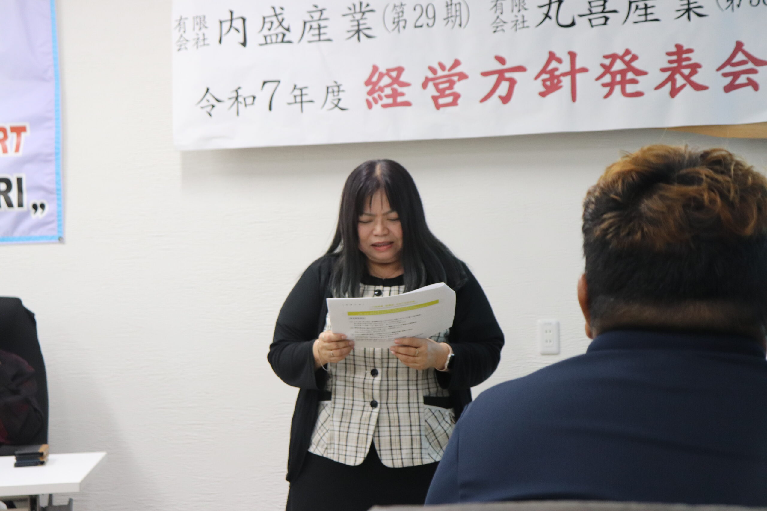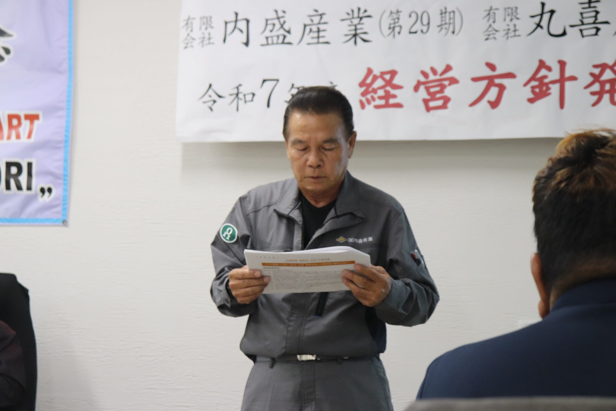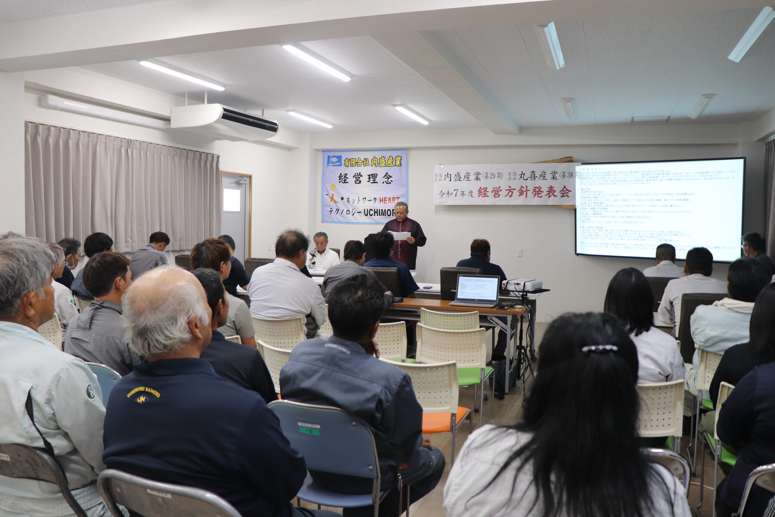 令和7年9月19日(金)、有限会社内盛産業本社にて「令和7年度 経営方針発表会」を開催いたしました。