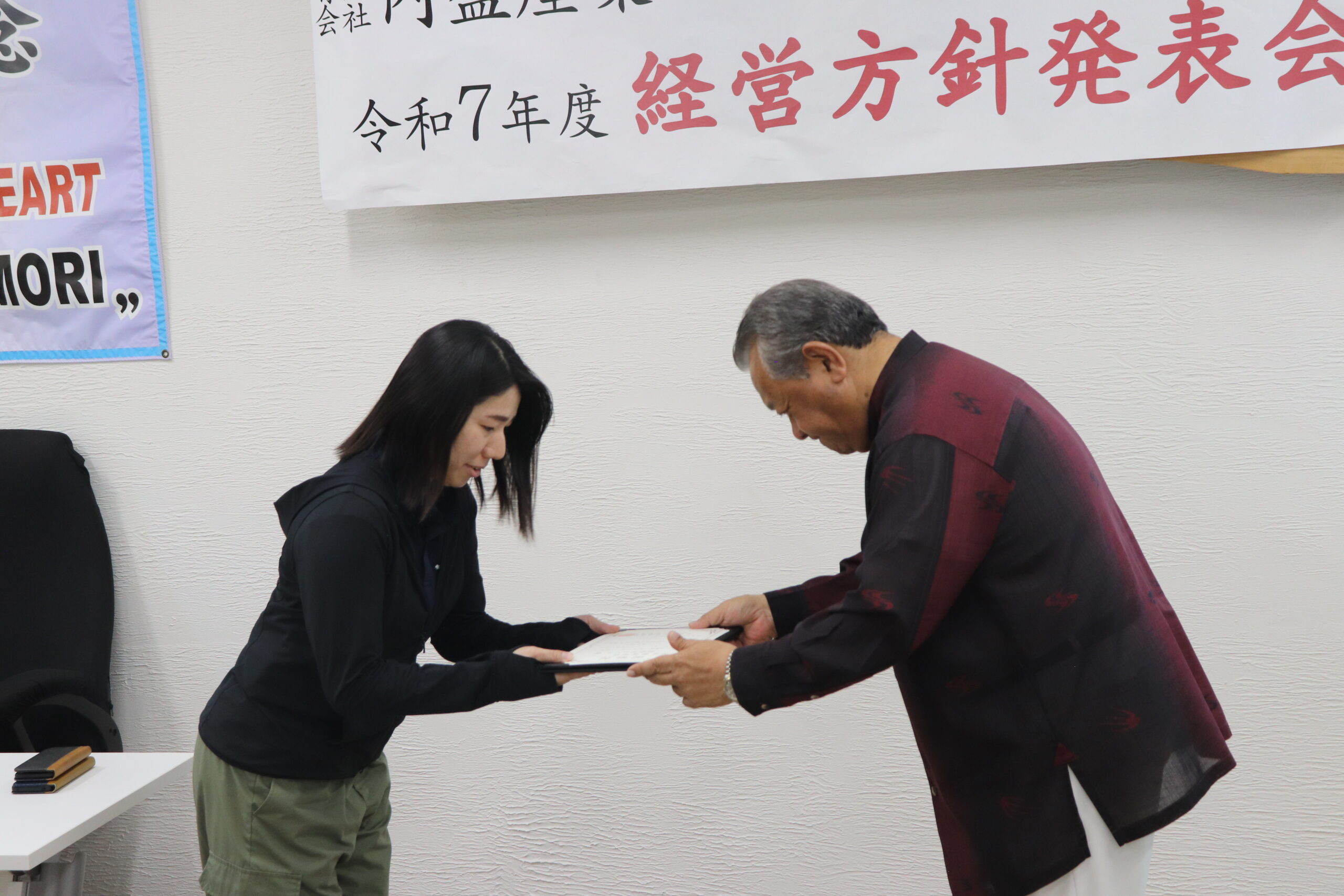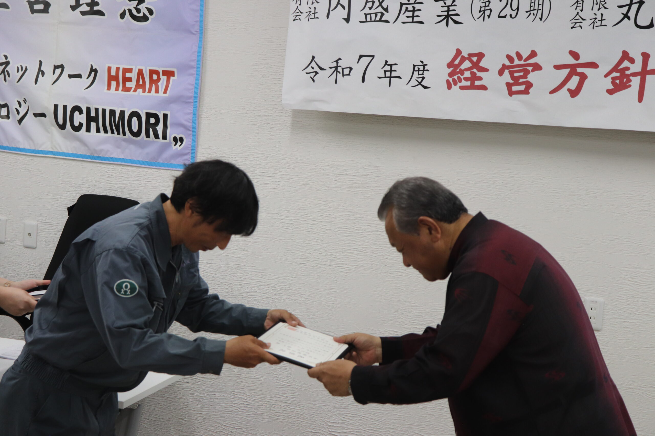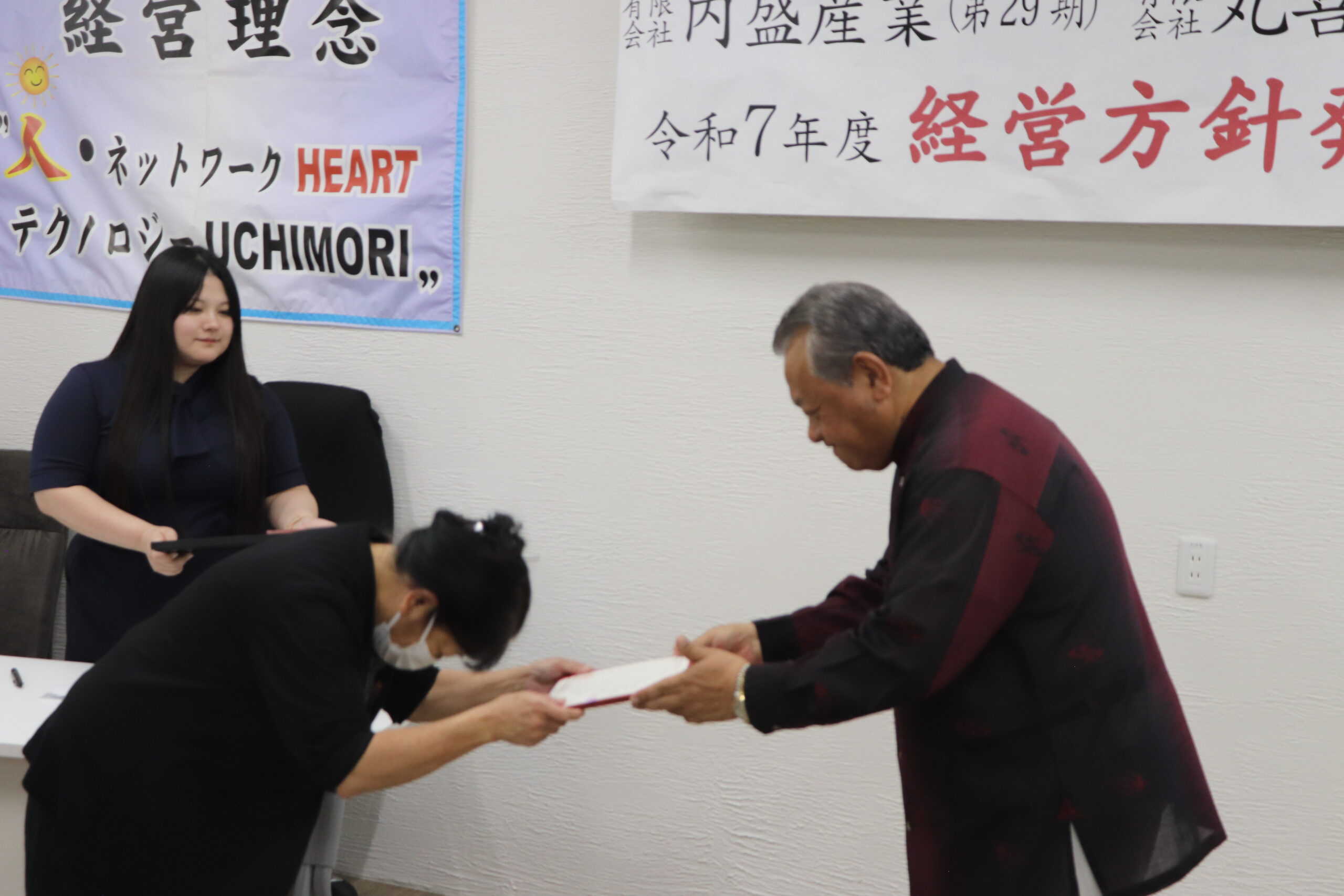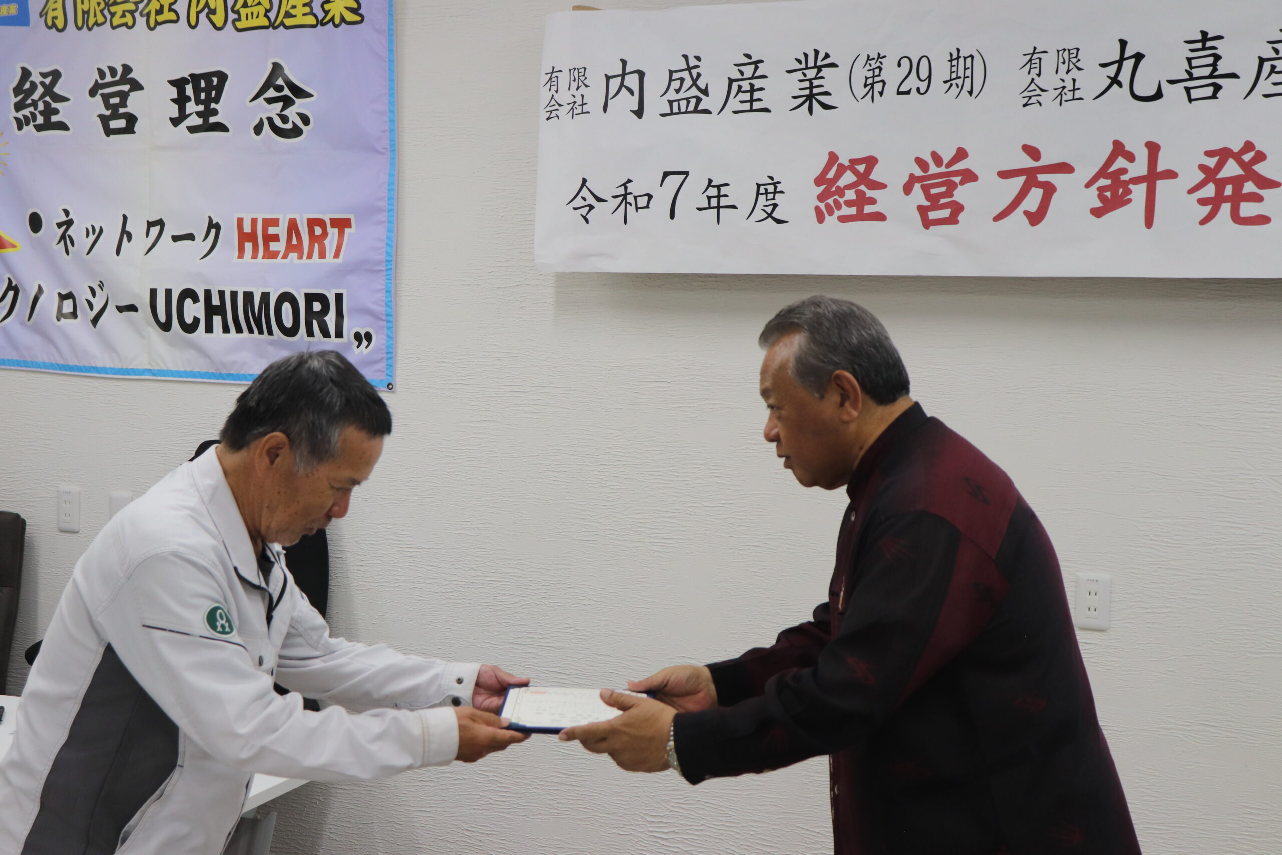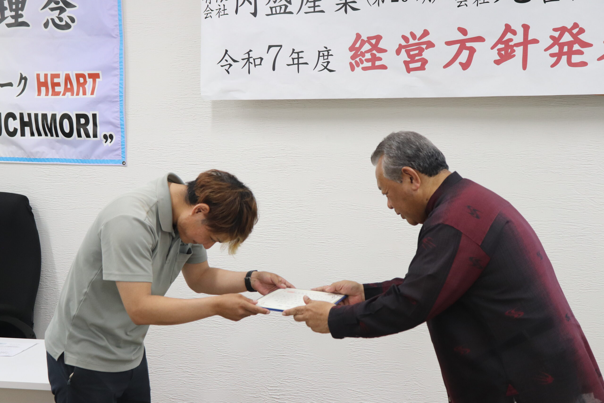令和7年9月19日(金)、有限会社内盛産業本社にて「令和7年度 経営方針発表会」を開催いたしました。