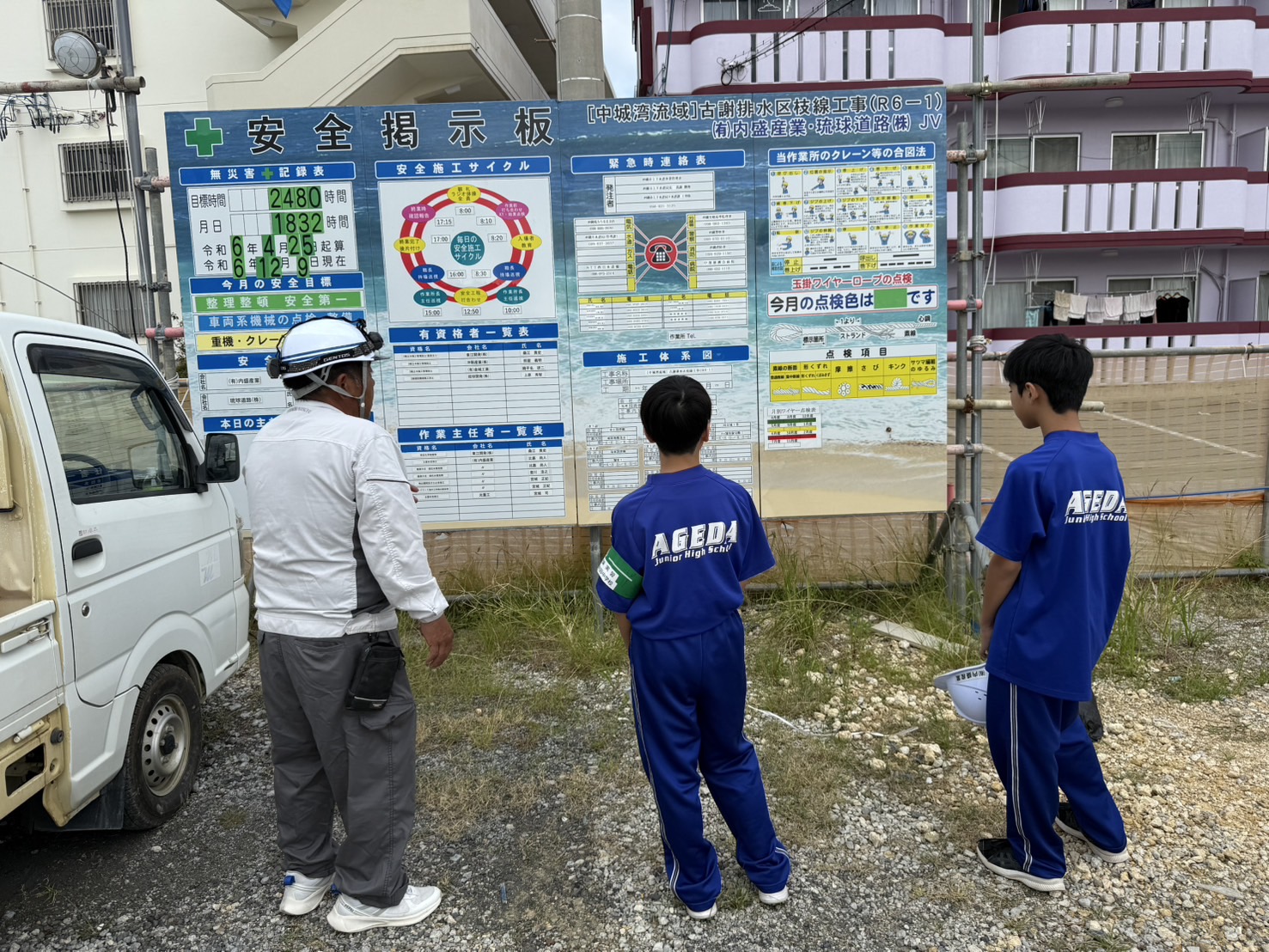 現場見学、安全管理について学んでいただき、生徒さんたちも元気に取り組んでくれました。