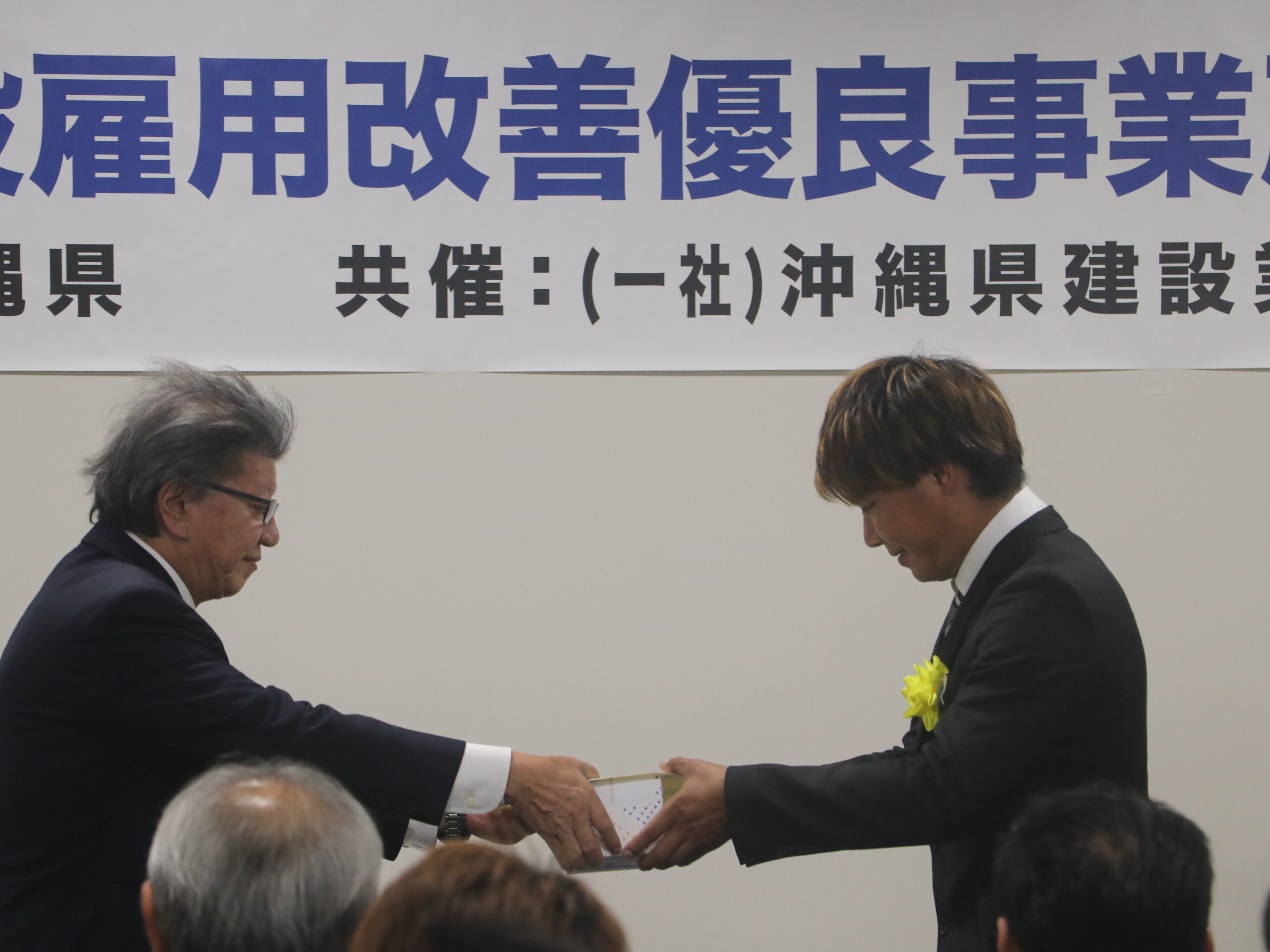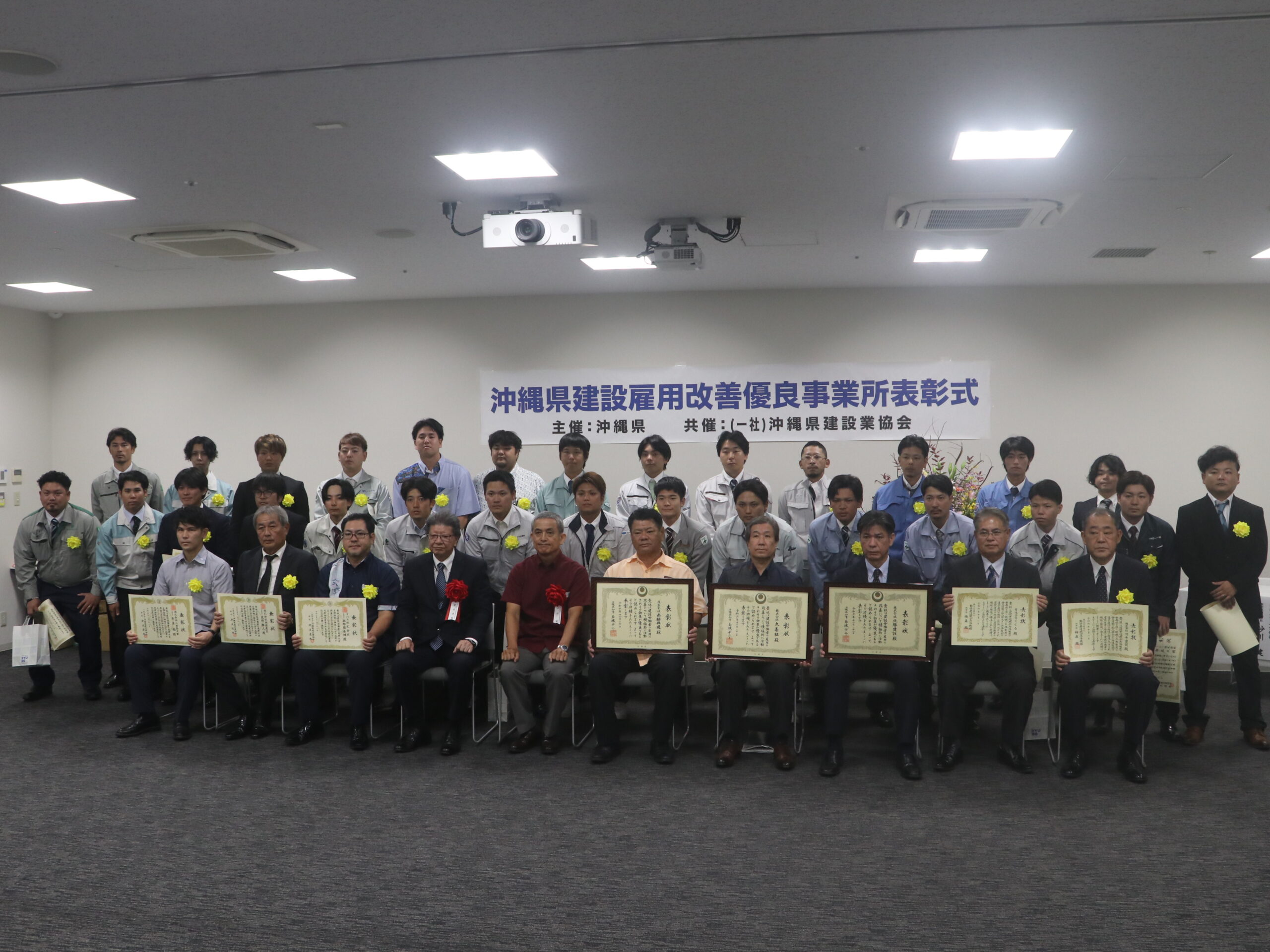 2024年度県建設雇用改善優良事業所の表彰式(主催・県、県建設業協会)が21日、那覇市のグッジョブセンターおきなわで開催されました。