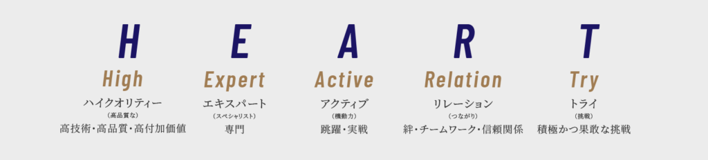 またHEARTの各スペルを頭文字とした5つの言葉には